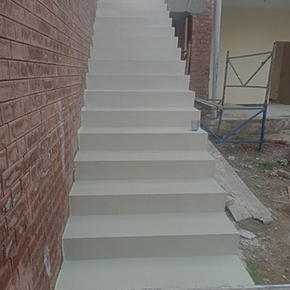 The flooring for the church has be installed, and the doors and windows for the school and classrooms have been completed! Additionally the staircase for the multi purpose hall has been completed. Now the two pastor houses are in progress, and the brick pavers are being installed.